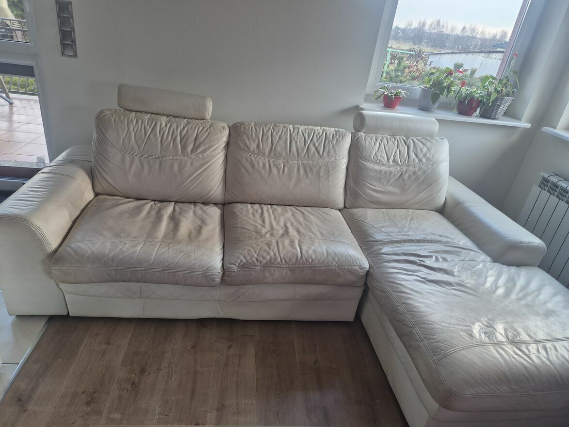 Skórzana sofa biała. Skóra naturalna. 280z boczkami i półką. Fotel 110 z boczkami.Sprawdź zainteresowanie tym ogłoszeniem